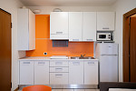 Die Wohnungen bestehen aus einem Wohnzimmer mit Kochnische und Doppelschlaufcouch, einem Badezimmer mit Fenster und Duschkabine, einem Schlafzimmer mit Doppelbett und Einzelbett sowie einer großen Terrasse. Ausgestattet mit Parkplatz, Klimaanlage, Waschmaschine und Mikrowelle.